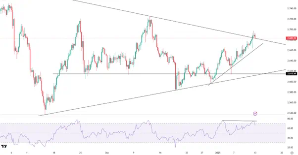 强劲非农数据并未打断黄金上行的节奏,但也无法给金价提供更多的利好刺激。黄金在盘中挑战2700美元未果后收于趋势线附近,在继续上行之前或许需要更多时间酝酿蓄力。