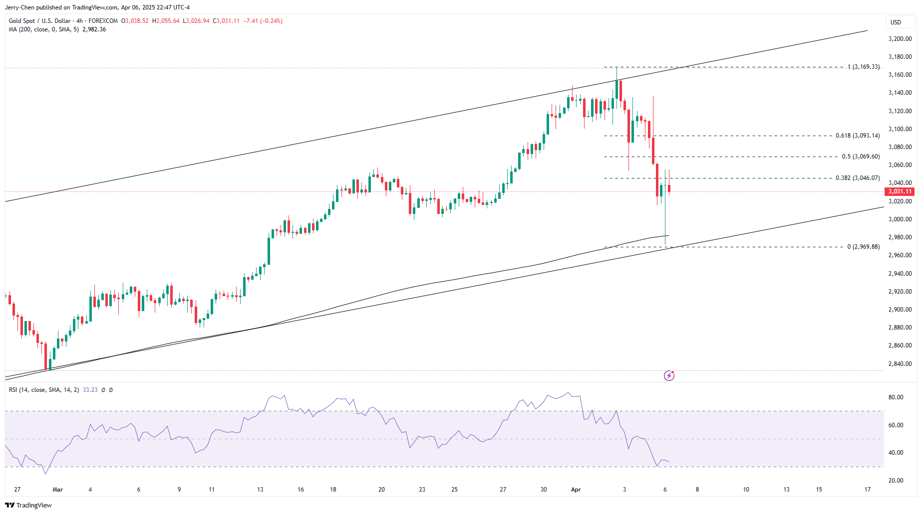 由于美联储主席鲍威尔上周五表示现在降息还“为时过早”,且在过去的周末关税大战没有降温迹象,周一开盘市场恐慌情绪加剧。美国三大股指期货重挫3%-5%,恐慌指数甚至疫情以来最高水平。东证和日经期货指数自2020年来首次触发熔断,恒生指数开盘低开9%。“抛售一切”的情绪导致黄金一度失守3000美元关口,纽约期铜暴跌10%,避险货币日元和瑞郎则保持强势。