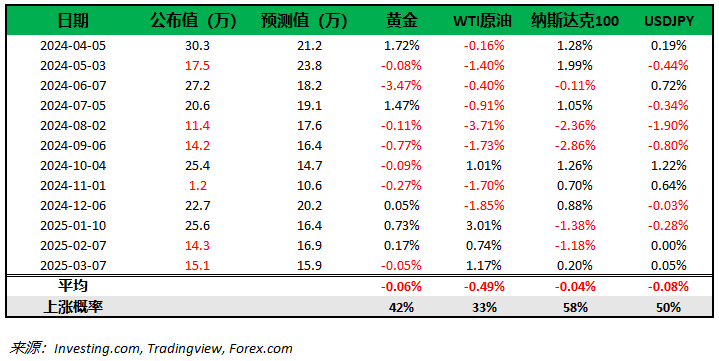 下图为过去12次非农数据以及当日市场表现,仅供参考。