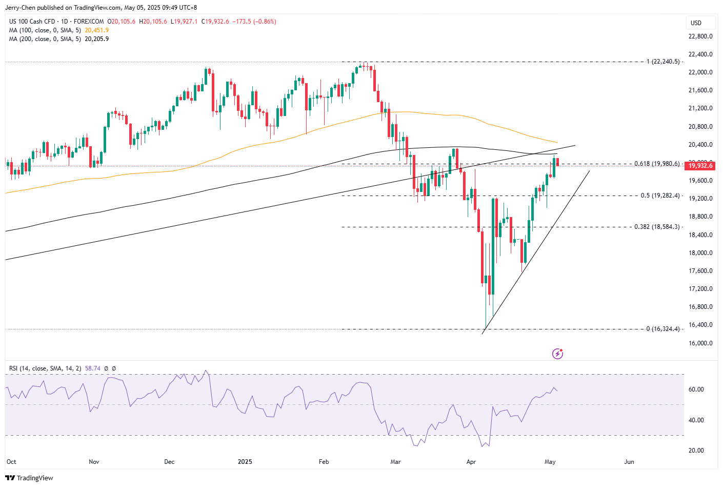 纳指从4月4日低点以来的反弹已经超过20%,消息面和财报等因素帮助市场情绪快速修复,但在此基础上进一步上涨的门槛较高。